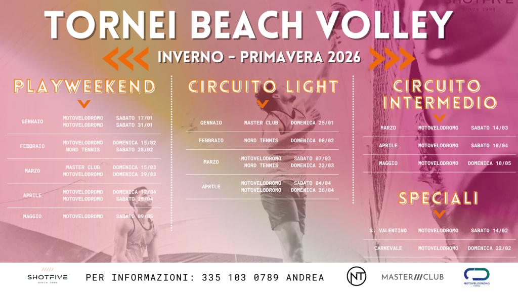 Infine, c’è il Circuito Verde, che comprende i PlayWeekend. Il circuito base pensato per chi vuole soprattutto divertirsi e giocare in compagnia. Non prevede premi di fedeltà né una classifica finale, ma è l’occasione ideale per vivere un pomeriggio di beach volley senza pensieri, con lo spirito di aggregazione che contraddistingue la nostra community.